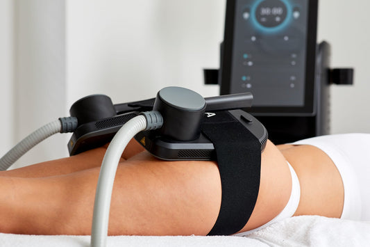 Die Tesla-Wave-Maschine nutzt eine neuartige, hochintensive, fokussierte elektromagnetische Technologie, die tief liegende Muskelgruppen stimuliert.